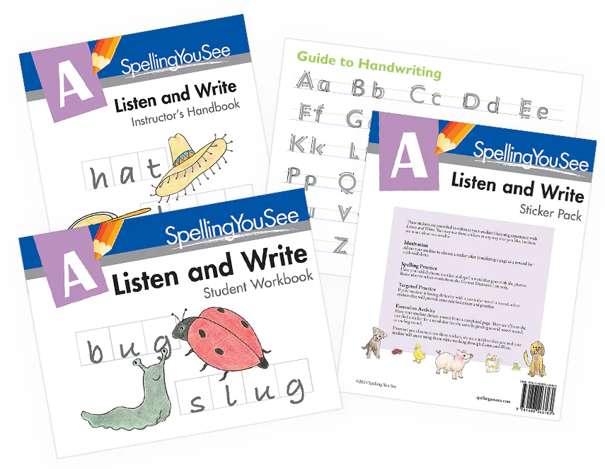 Listen and Write: Spelling You See Level A provides lots of practice in writing individual letters and in hearing the sounds that letters make in simple words. This level is for a beginning reader who is still learning letter names and sounds and how to hold a pencil properly when writing.